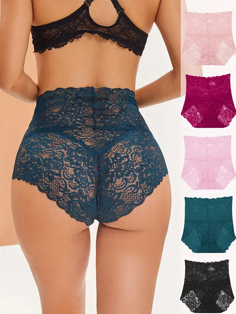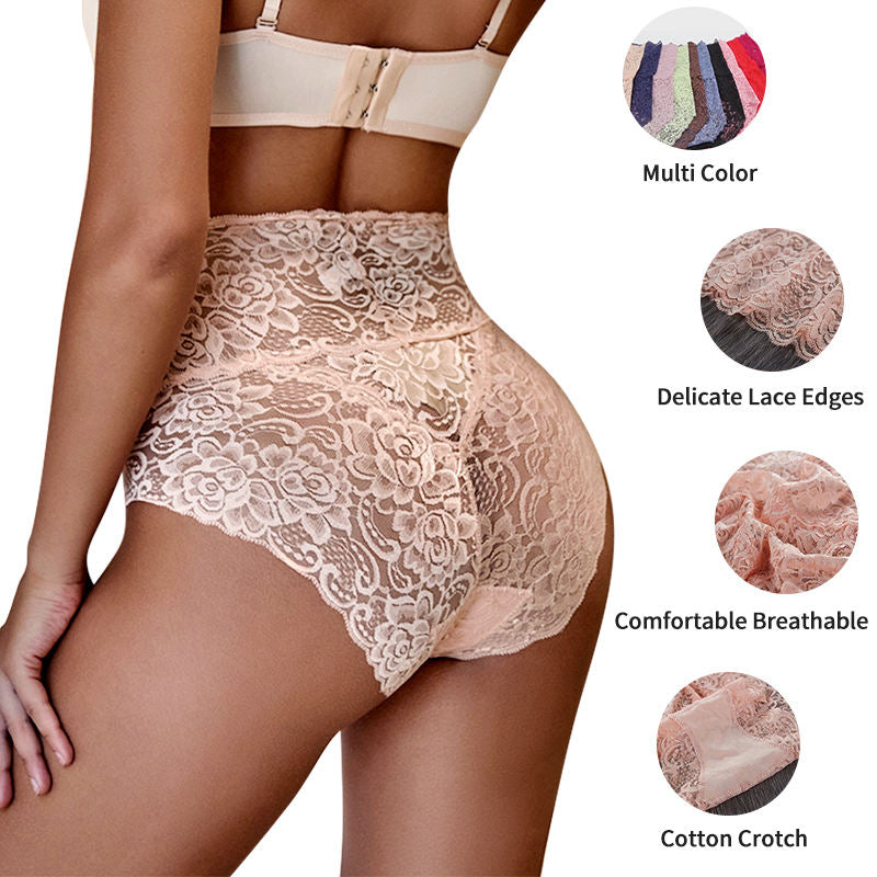 🔥【6 ks sada】Letné čipkované nohavičky s vysokým pásom – mäkké, priedušné a pohodlné